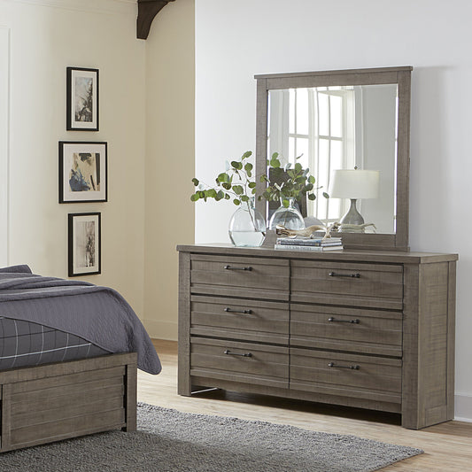 Sedona Transitional Medium Gray Wood 6-Drawer Dresser and Mirror