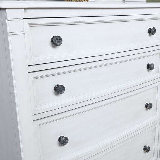 Saline Wood Planked Style 5-Drawer Chest in White Finish
