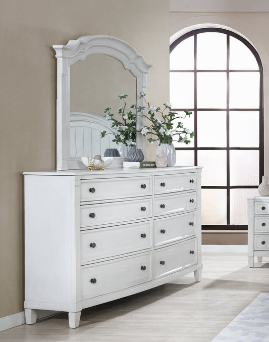 Saline Wood Planked Style 8-Drawer Dresser with Mirror in White Finish