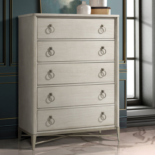 Mantalia Solid Wood 5-Drawer Chest with Metal Frame, Champagne