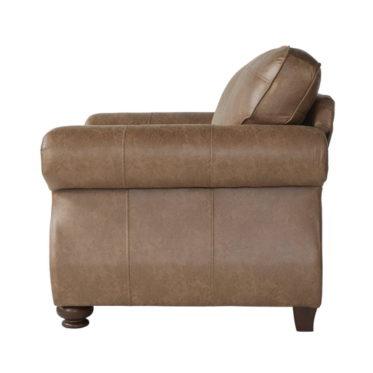 Leinster Faux Leather Armchair with Antique Bronze Nailheads in Jetson Ginger