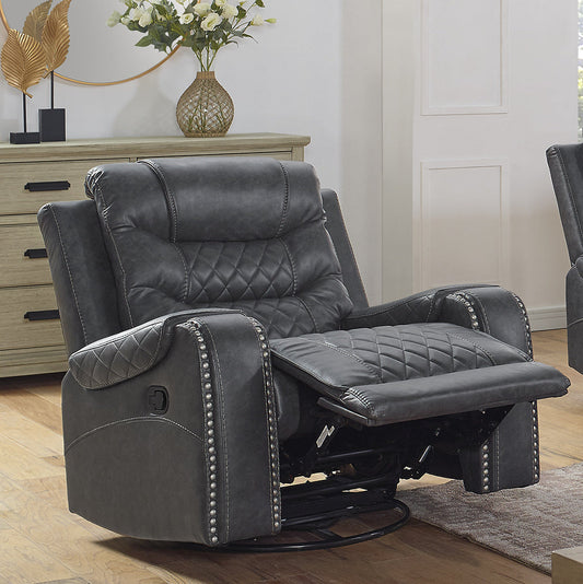 Klens Faux Leather Swivel Glider Recliner with Nailhead Trim, Gray