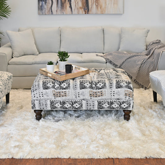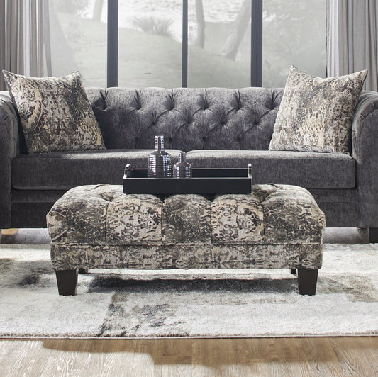 Roundhill Furniture Charbilia Fabric Tufted Cocktail Ottoman in Tupper Onyx