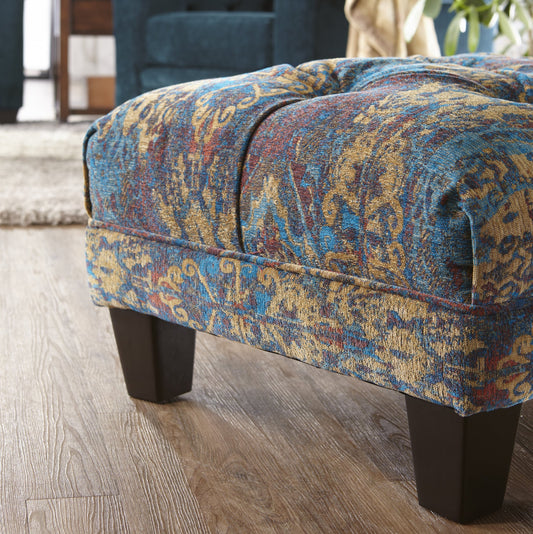 Roundhill Furniture Charbilia Fabric Tufted Cocktail Ottoman in Tapestry Ocean Cliff