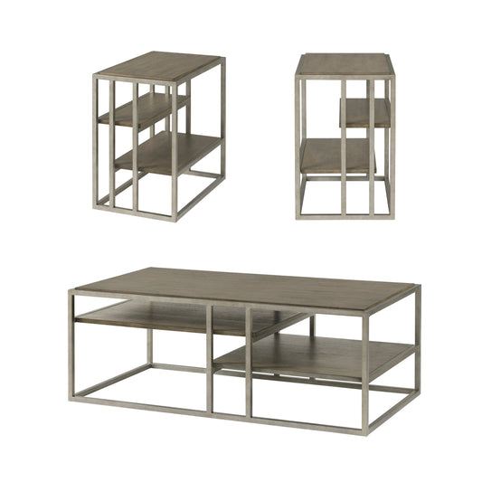 Roundhill Furniture Corbeta 3-Piece Metal Frame Wood Living Room Coffee Table and 2 End Tables Set, Aged Graphite