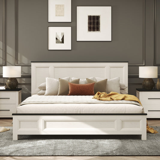 Roundhill Furniture Realynn Panel Bed, Off-White Finish