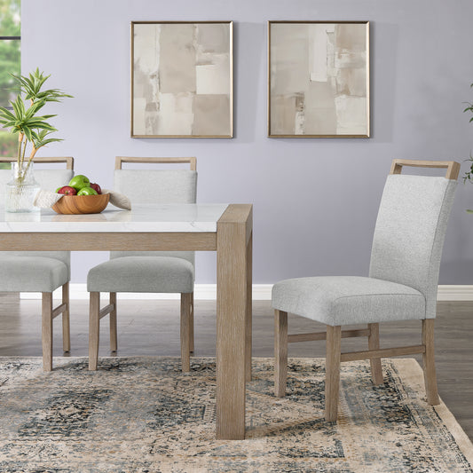 Roundhill Furniture Zelalle 7-Piece Dining Set, Table with 6 Chairs, White Wired-Brushed Finish