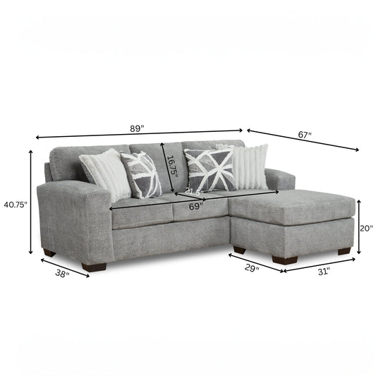 Roundhill Furniture Arden Living Room Collection with Convertible Sofa Chaise and Loveseat, Posh Gray
