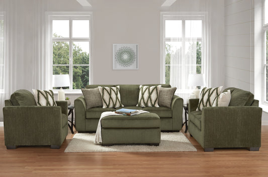 Roundhill Furniture Marvella 4-Piece Living Room Set, Sofa, Loveseat, Chair, and Ottoman with Mosswood Chenille Upholstery
