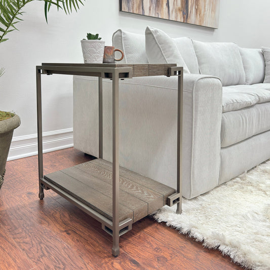Roundhill Furniture Corbeta Metal Frame Wood Living Room Chairside Table with Shelf, Aged Graphite