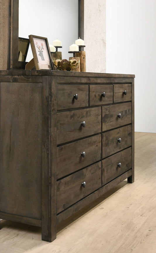 Oakland 139 Antique Oak Finish Wood 8 Drawers Dresser and Mirror