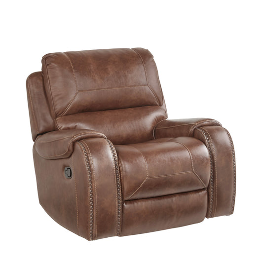 Achern Brown Leather Nailhead Swivel Glider Recliner