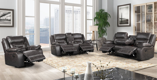 Rowena Contemporary Faux Leather Reclining Living Room Collection, Smoke