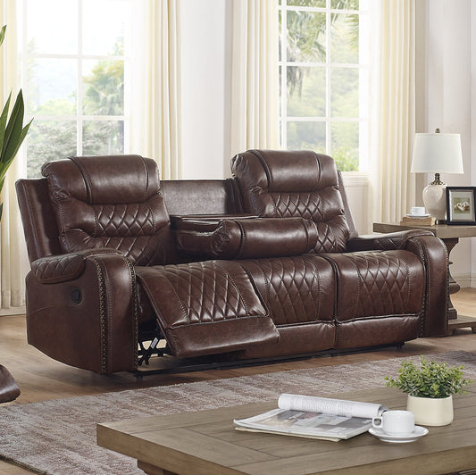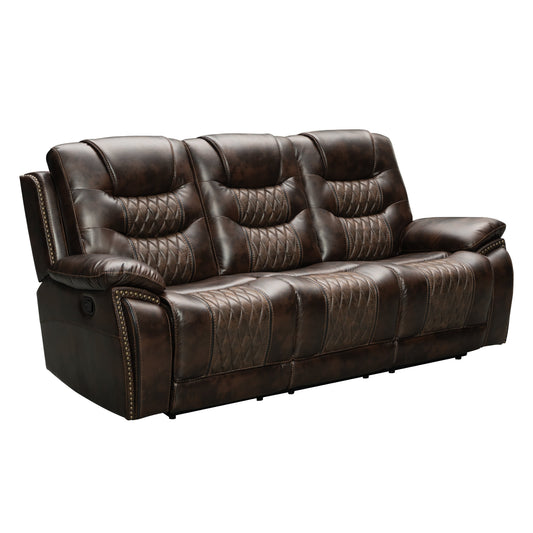 Klens Faux Leather Reclining Sofa with Nailhead Trim and USB Port, Brown