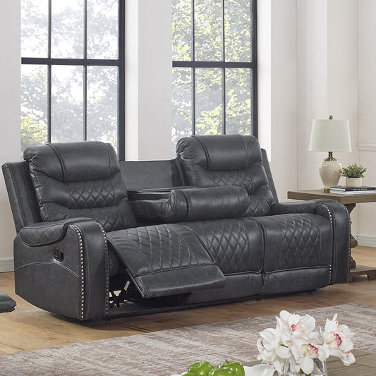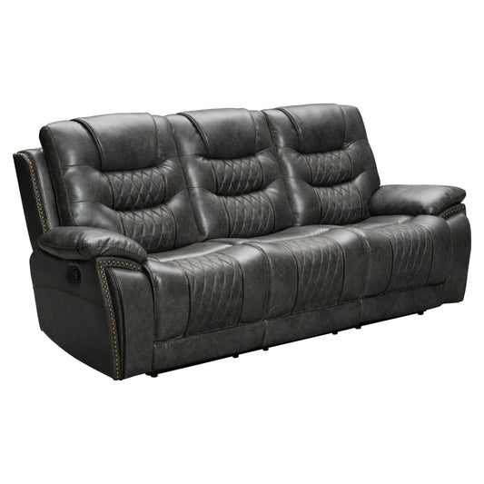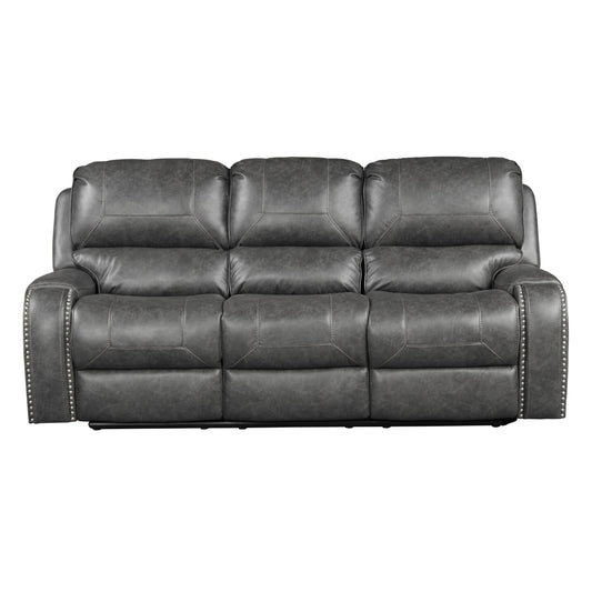 Achern Gray Leather-Air Nailhead Manual Reclining Sofa with USB Port