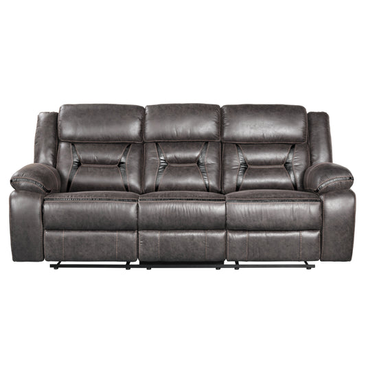 Kovel Faux Leather Reclining Sofa with USB Port in Outlaw Steel