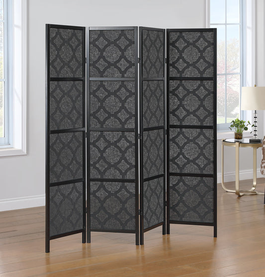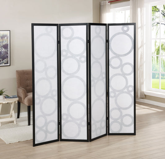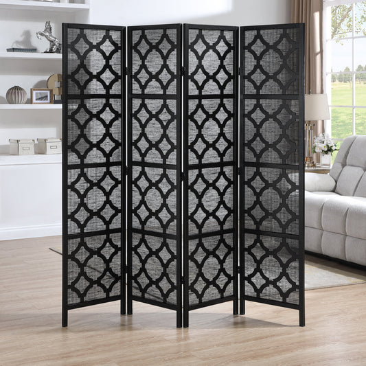 Arvada 4-Panel Wood Room Divider with Circle Pattern, Black