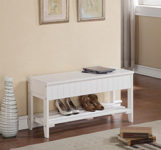 Rennes White Finish Quality Solid Wood Shoe Bench With Storage