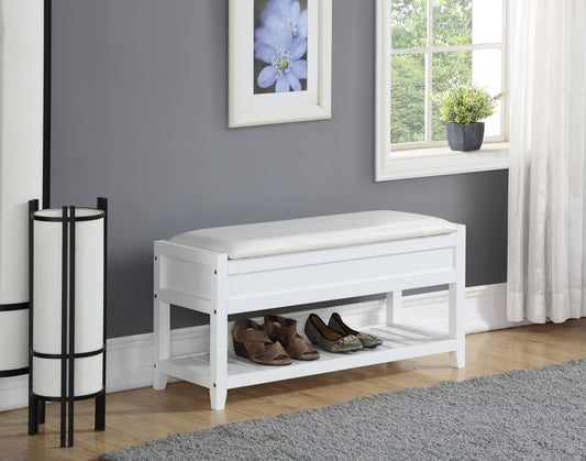 Roundhill Furniture Rouen Seating Bench with Shoe Storage, Clean White