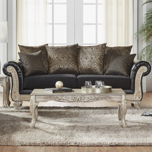 San Marino Wood Frame Faux Leather Living Room Collection, Ebony