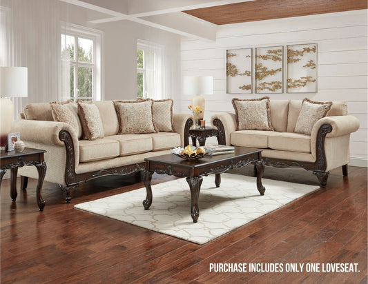 Hernen Carved Wood Frame Loveseat