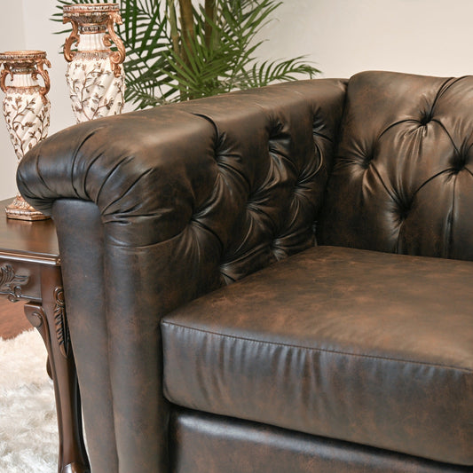 Horton Faux Leather Chesterfield Loveseat, Brownie