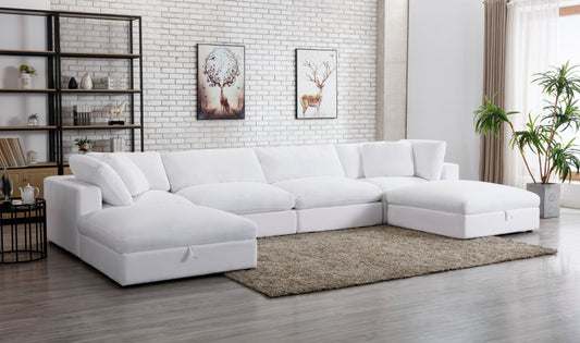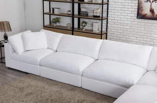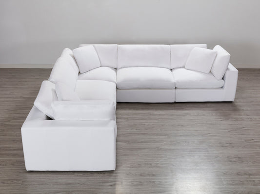 Rivas Contemporary Feather Fill 6-Piece Modular L-Sectional Sofa with Ottoman, White
