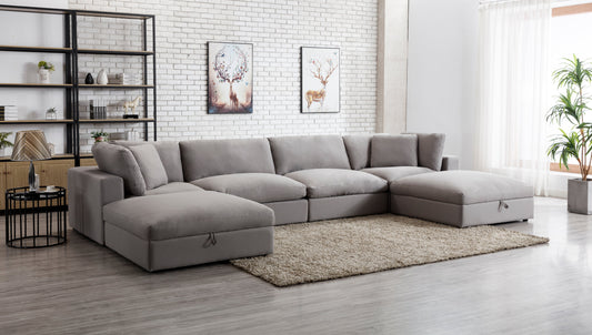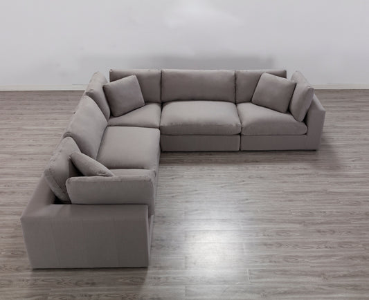 Rivas Contemporary Feather Fill 6-Piece Modular L-Sectional Sofa with Ottoman, Graphite