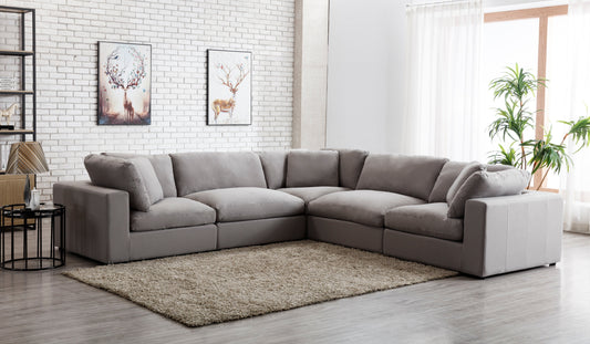 Rivas Contemporary Feather Fill 5-Piece Modular Sectional Sofa, Graphite