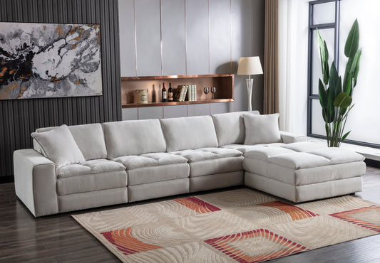 Breton Contemporary Fabric Tufted Modular Sectional Sofa with Ottoman, Oyster
