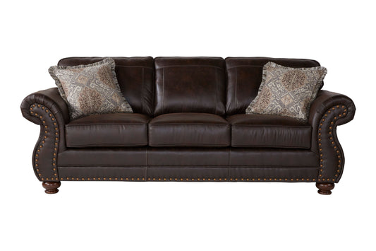 Leinster Faux Leather Upholstered Nailhead Sofa in Espresso