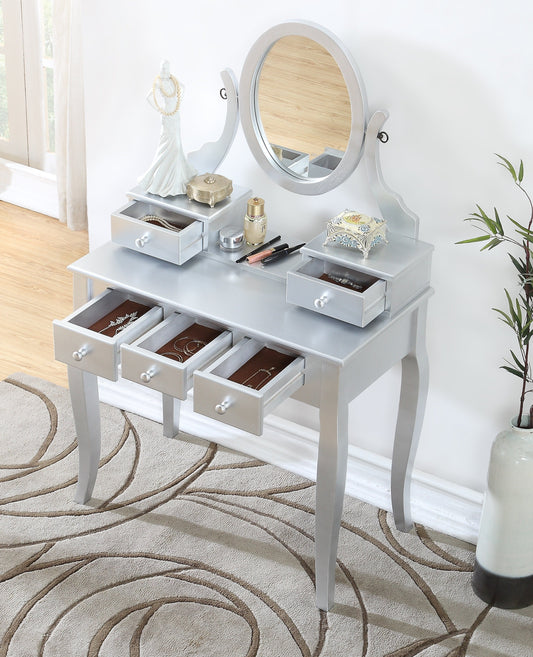 Roundhill Furniture Ashley Silver Wood Makeup Vanity Table and Stool Set