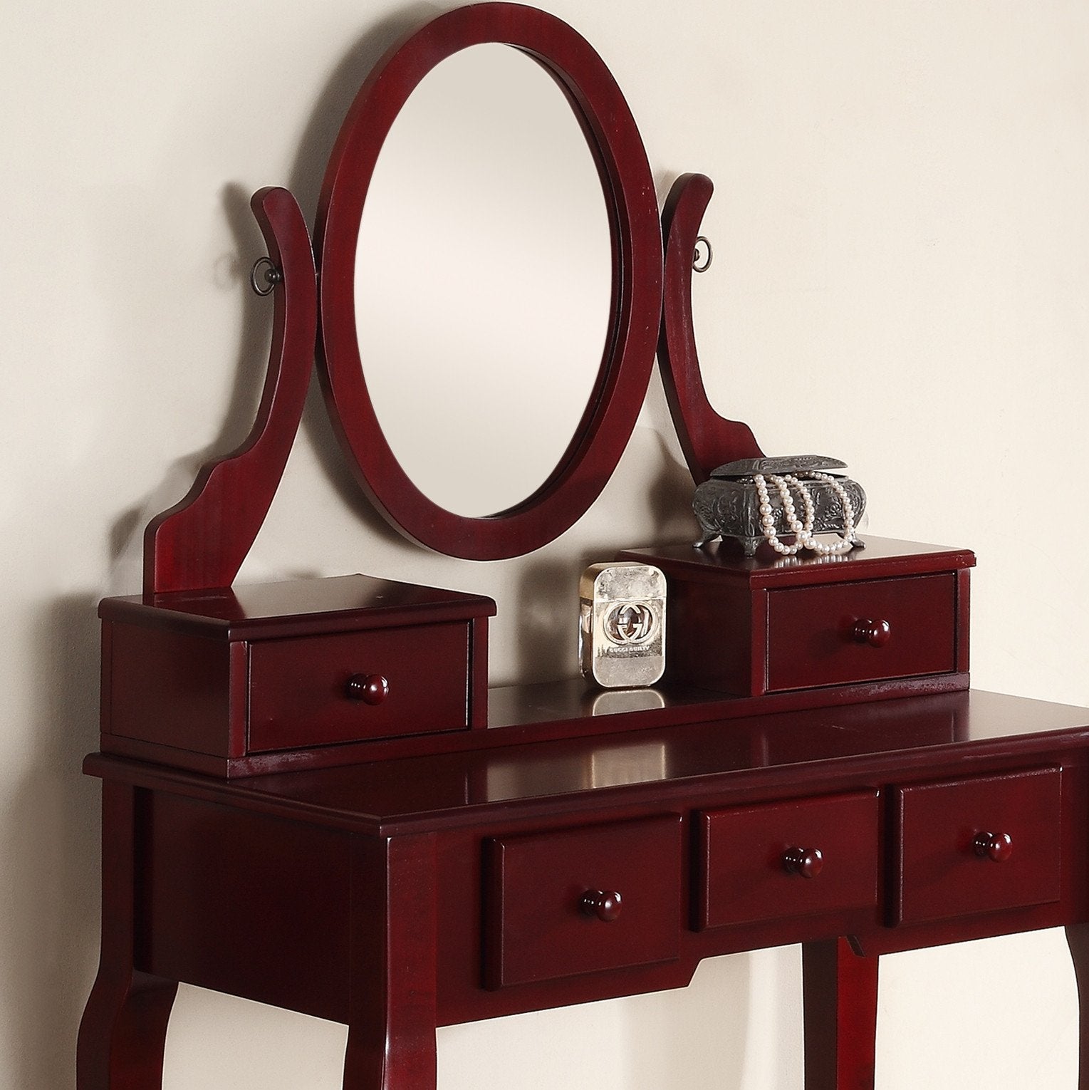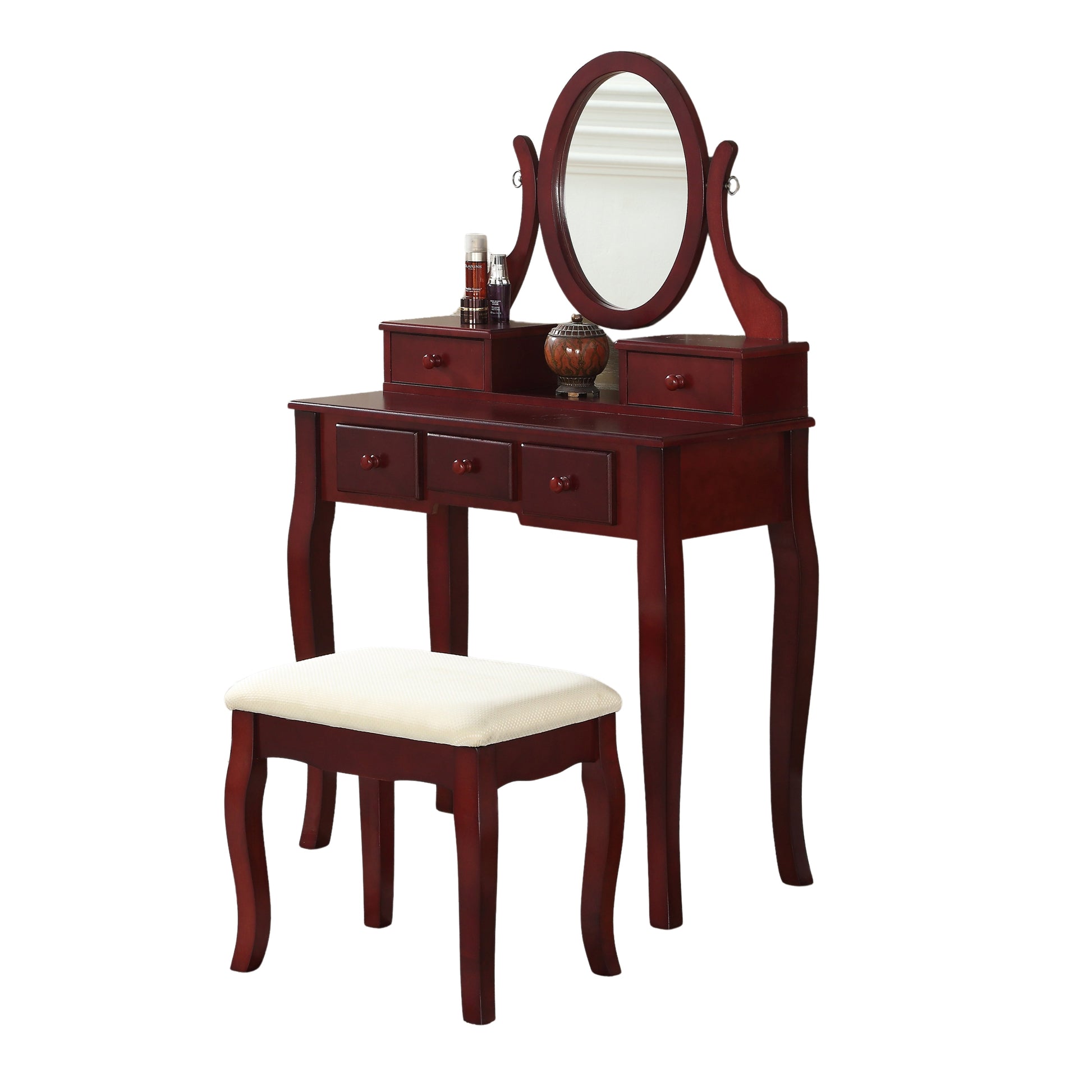 Ashley Wood Makeup Vanity Table and Stool Set - Cherry