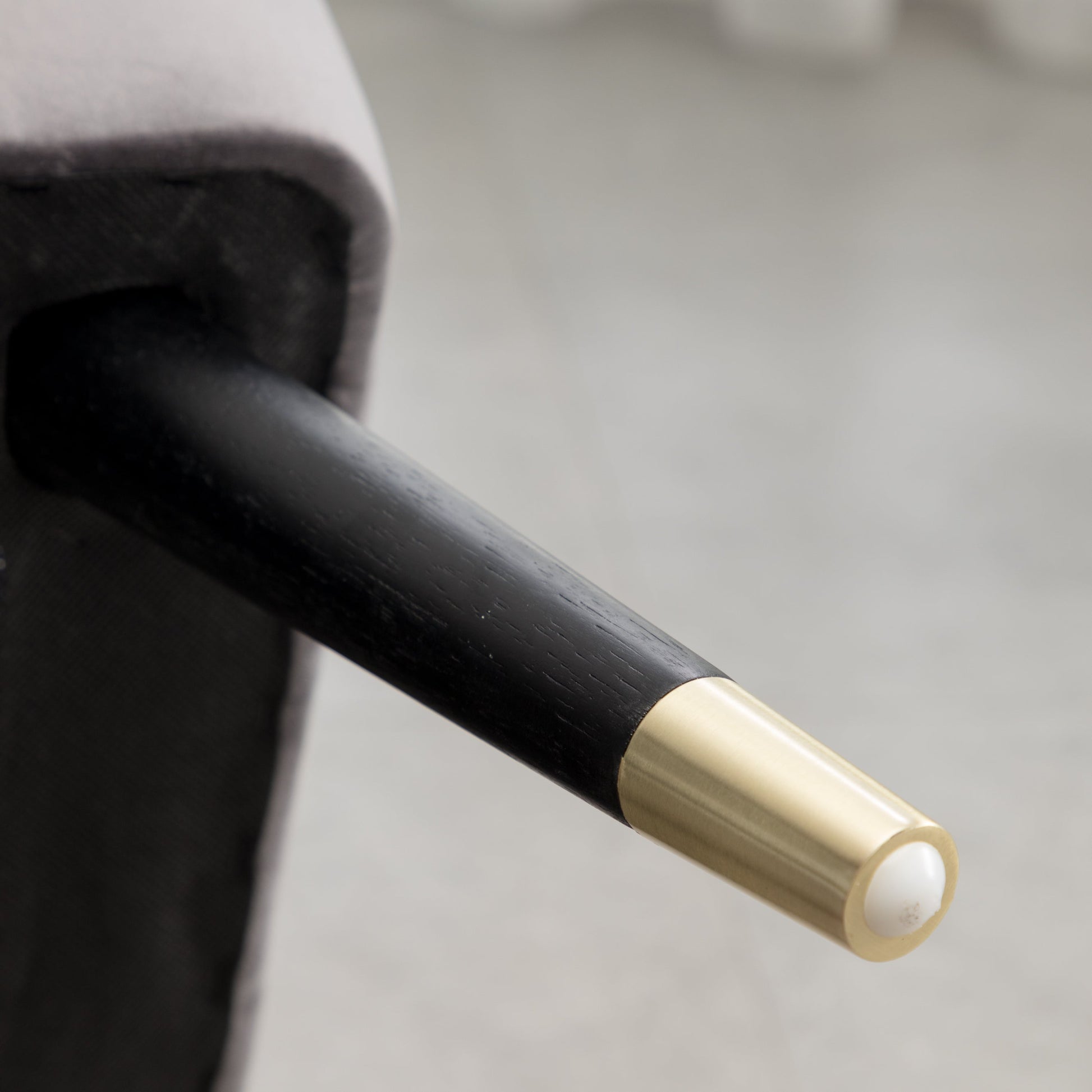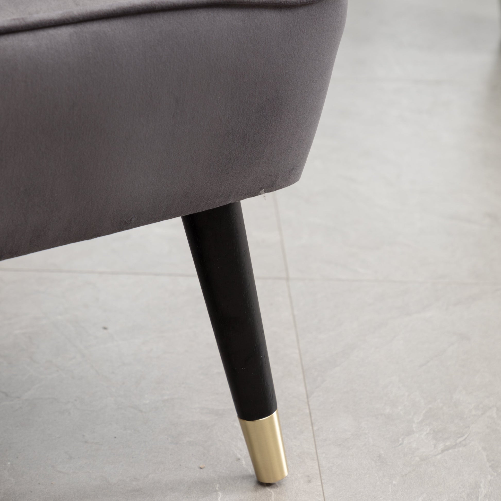 - Solid rubberwood legs finished in a rich black color with the gold-tone metal electroplated on the end