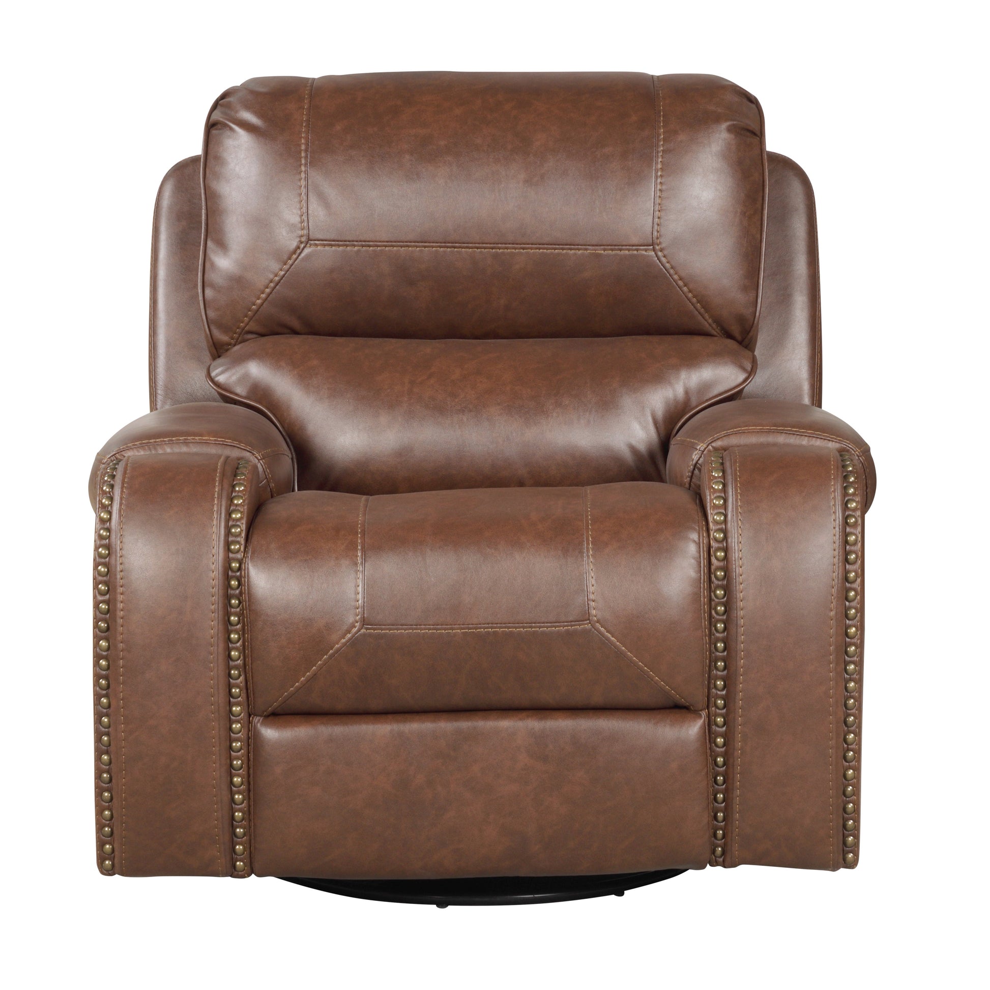 Achern Brown Leather-Air Nailhead Manual Reclining Living Room Collection