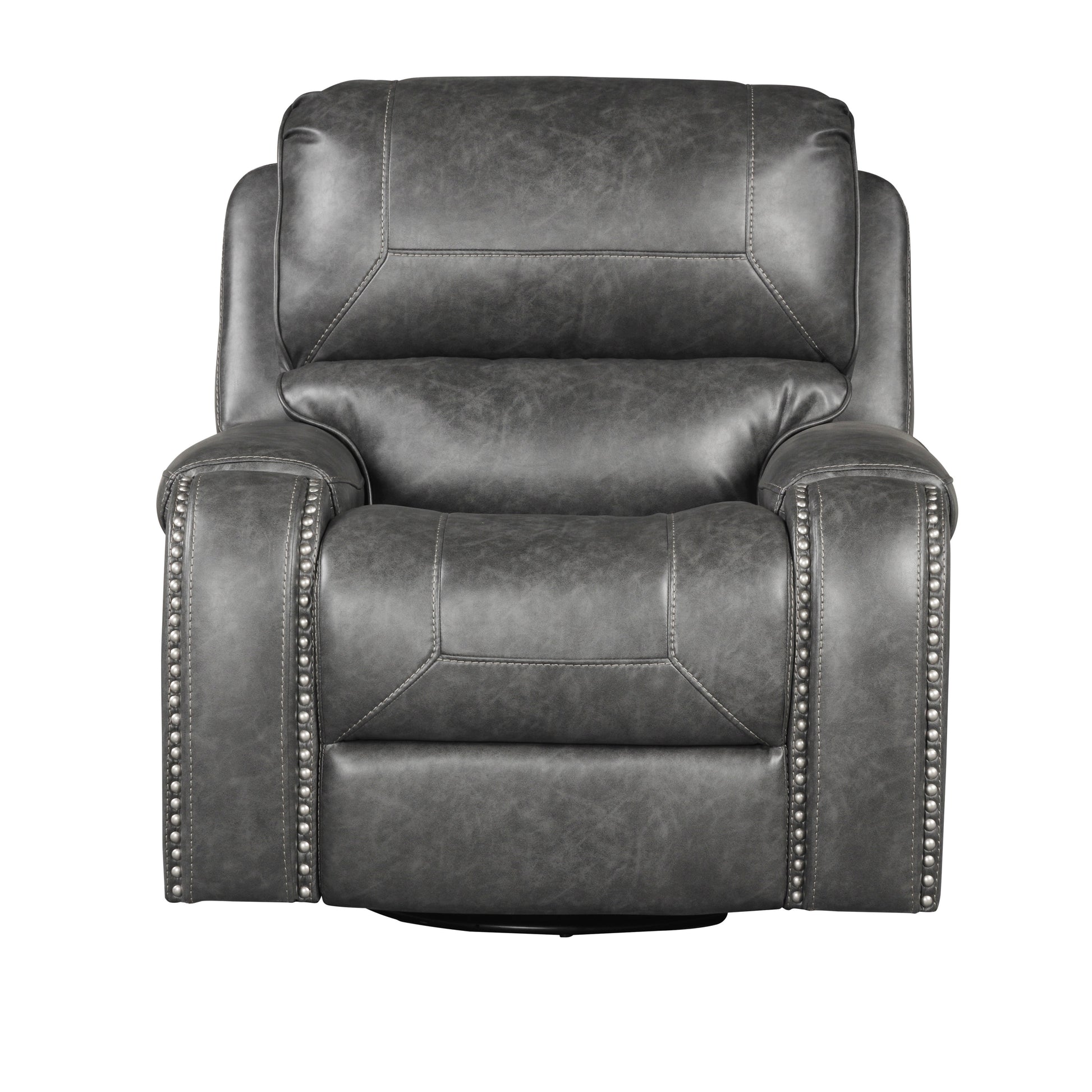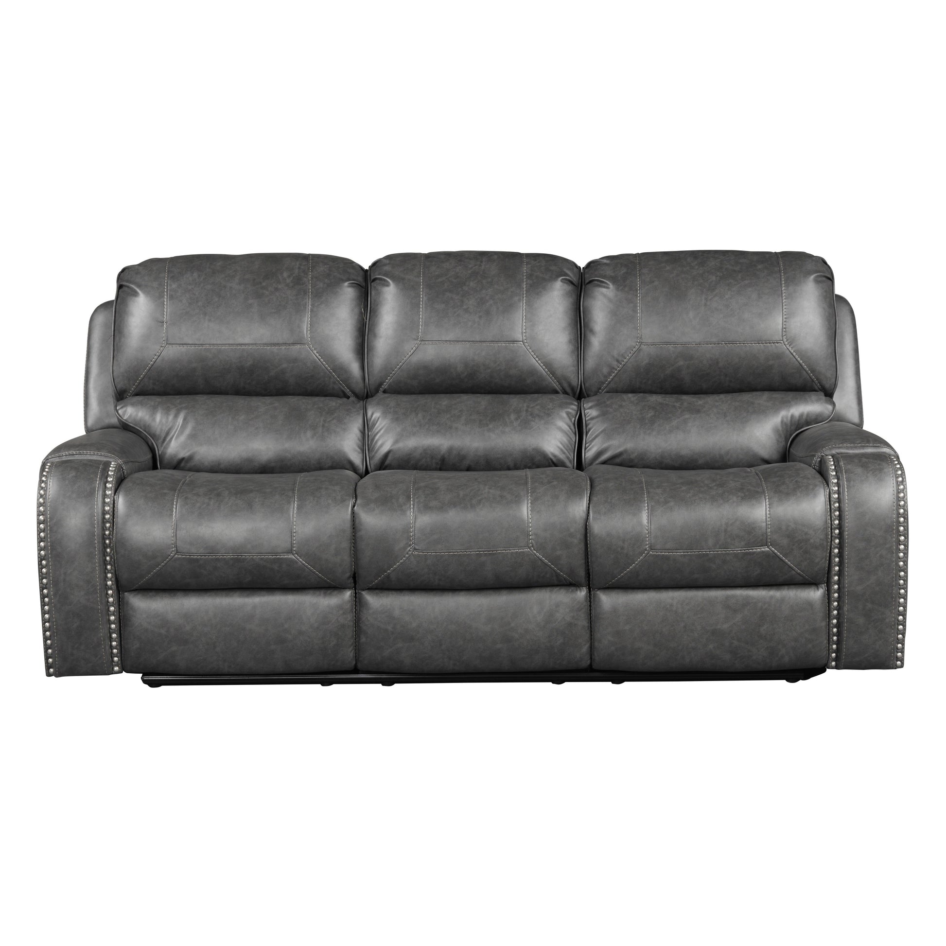 Achern Gray Leather-Air Nailhead Manual Reclining Living Room Collection