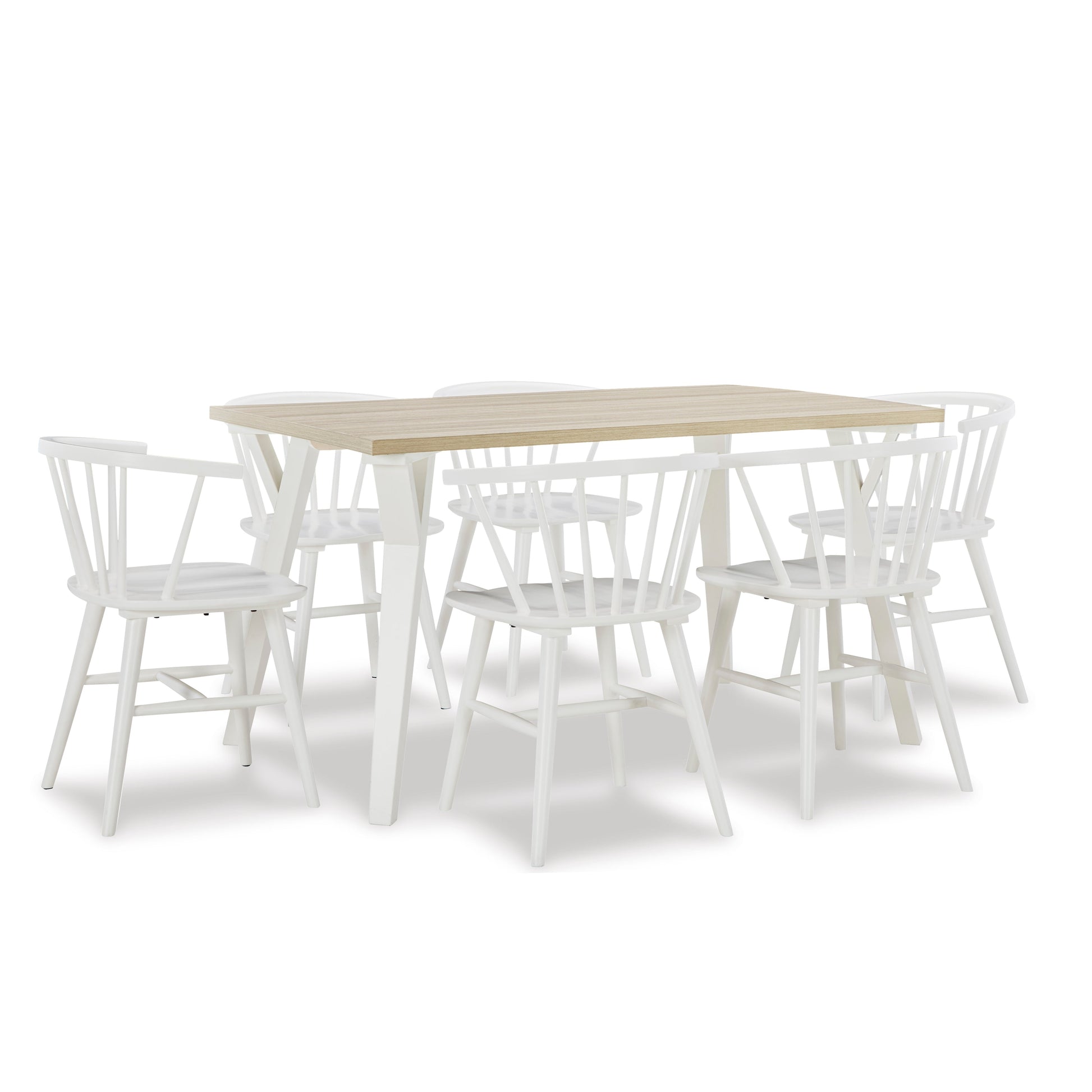 Alwynn White and Natural Wood 7-piece Dining Set, Dining Table with 6 Windsor Chairs