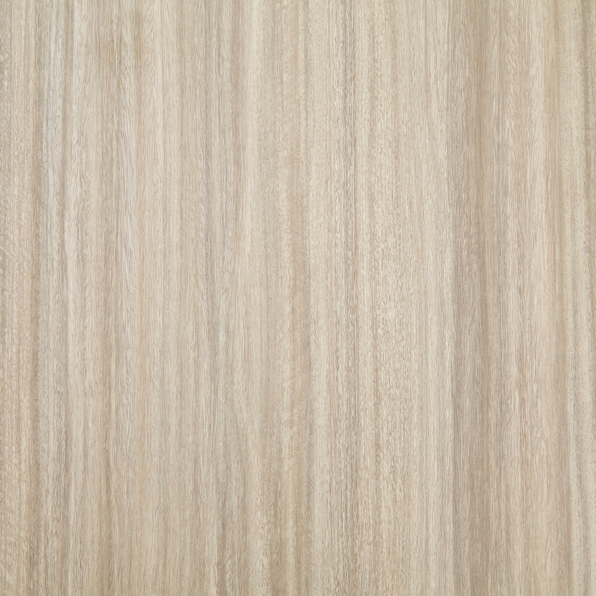 - The Alwynn dining table features a two-tone design with a light tan melamine wood grain top and white-finished base.