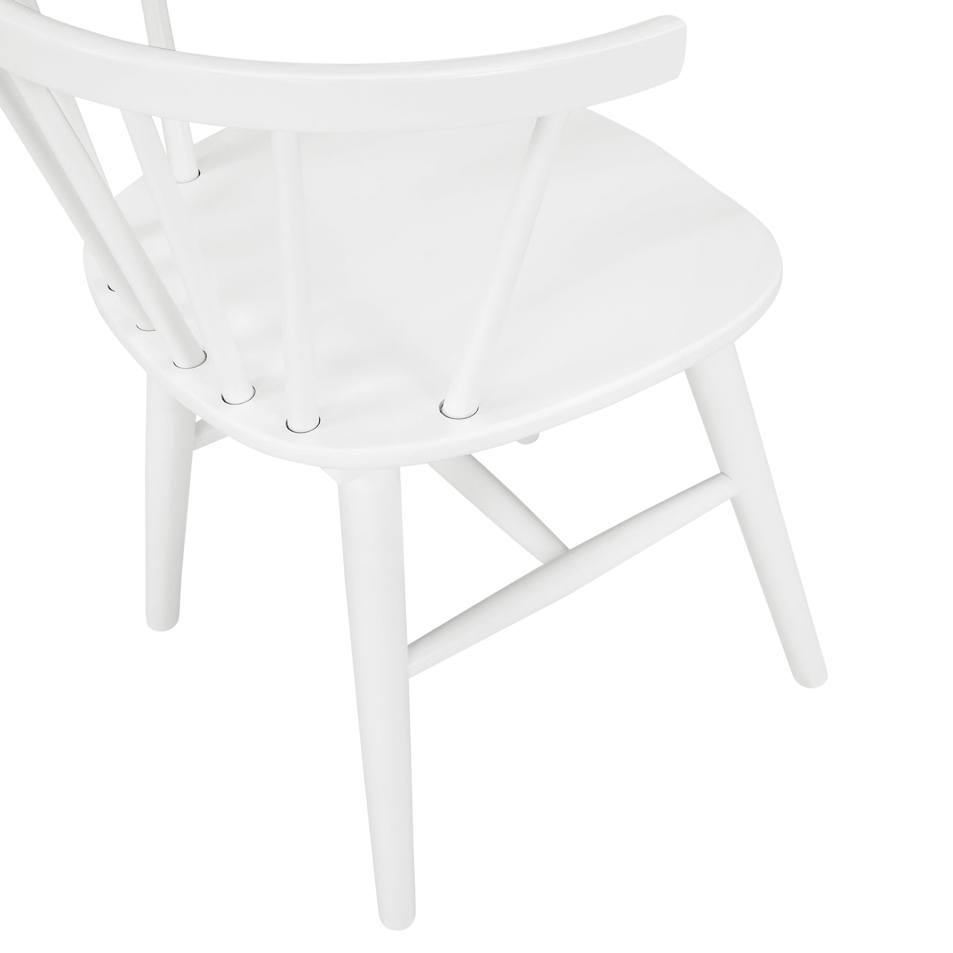 - [SIX WINDSOR CHAIRS]: Alwynn dining chairs with a sleek white finish, adding freshness and modernity to any space. Crafted with solid wood, these chairs offer exceptional durability and stability with a sturdy "H" stretcher. The stylish low spindle back design and turned legs add elegance and sophistication. Experience the perfect blend of style and reliability with our remarkable dining chairs.