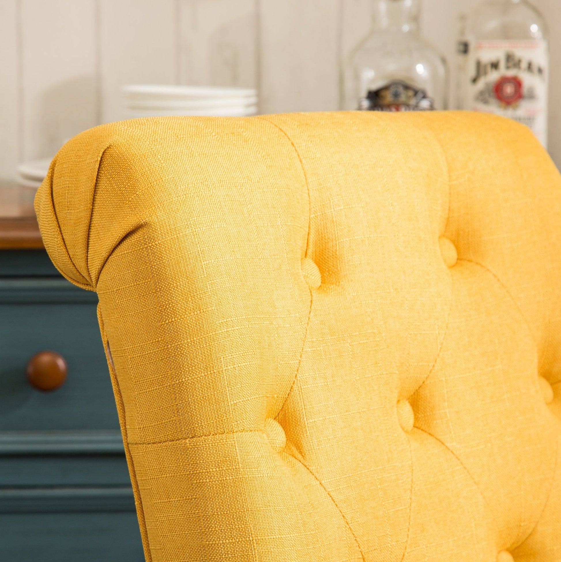 This set includes a sleek dining table and four Parsons dining chairs, effortlessly combining style and comfort. Crafted with durability in mind, the dining table features robust rubber wood legs with an exquisite turned-leg design, adding a touch of sophistication to your space. The chairs are designed with padded seats and backs, providing optimal comfort for your dining experience. The button-tufted detailing on the chairs adds an extra layer of elegance. Whether you're hosting a dinner party or enjoying a family meal, the Roundhill Amonia 5-piece Dining Set is sure to impress with its timeless appeal and exceptional quality. Upgrade your dining room with this exquisite set that combines superior craftsmanship and elegant design. Choose from six color options: Blue, Charcoal, Gray, Purple, Tan, and Yellow.