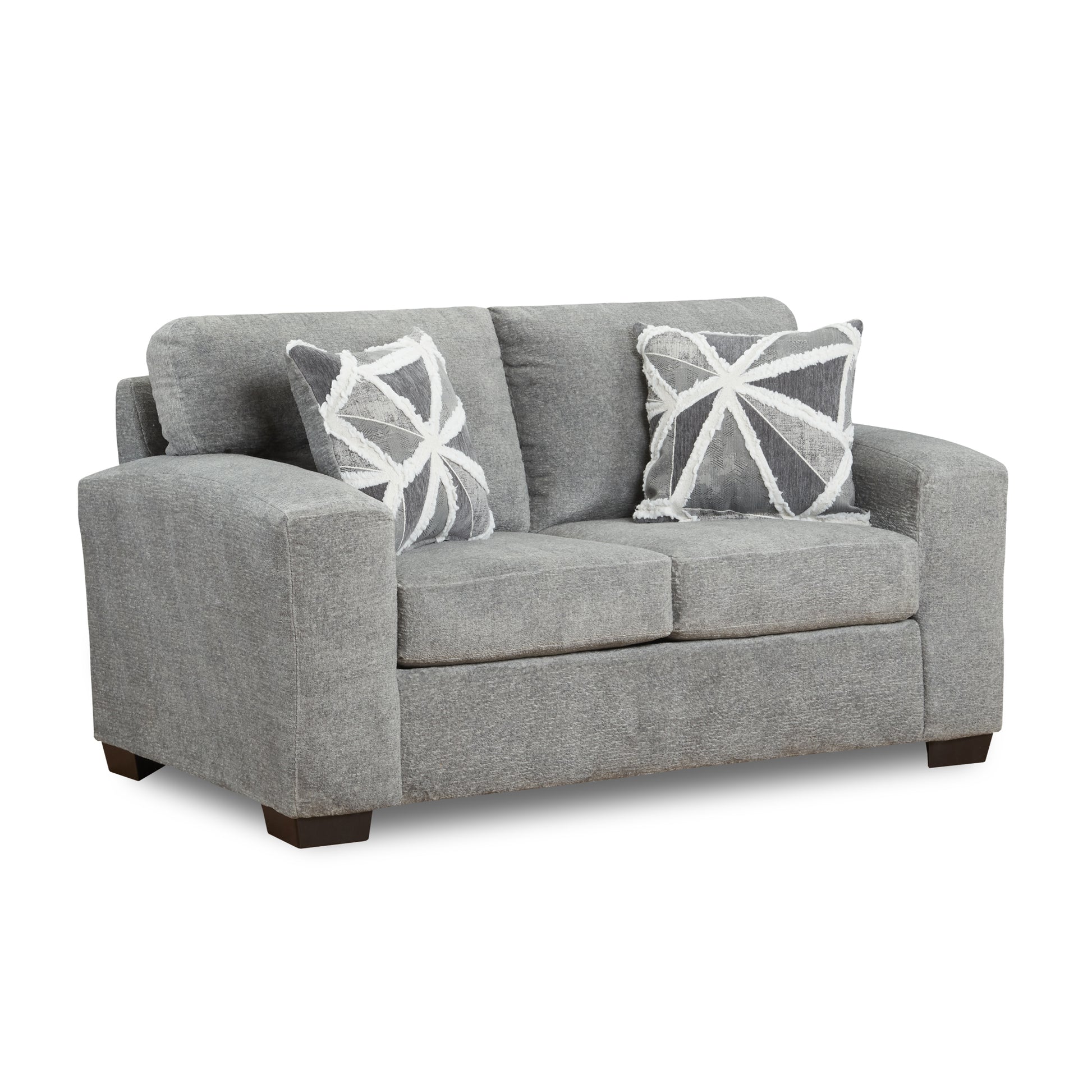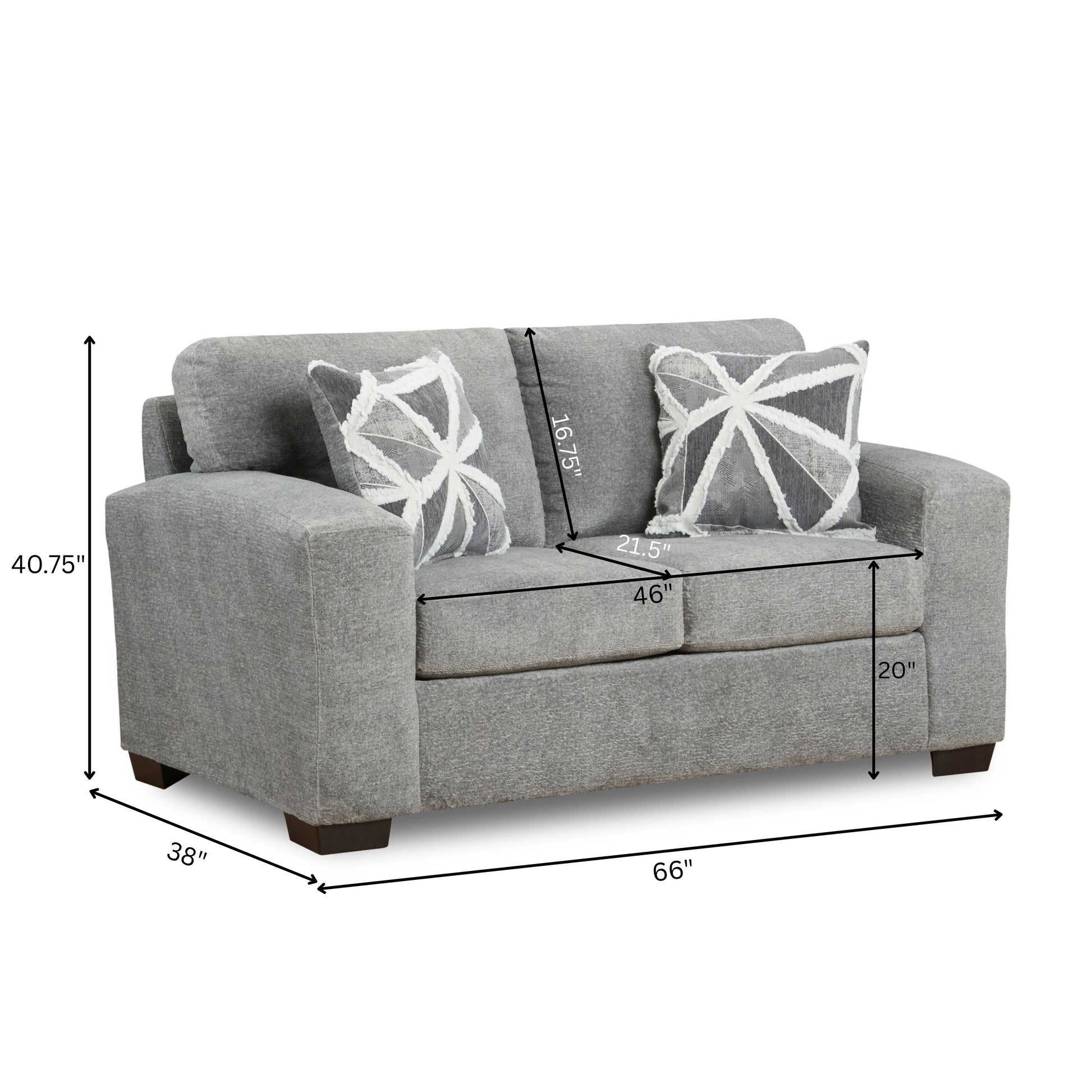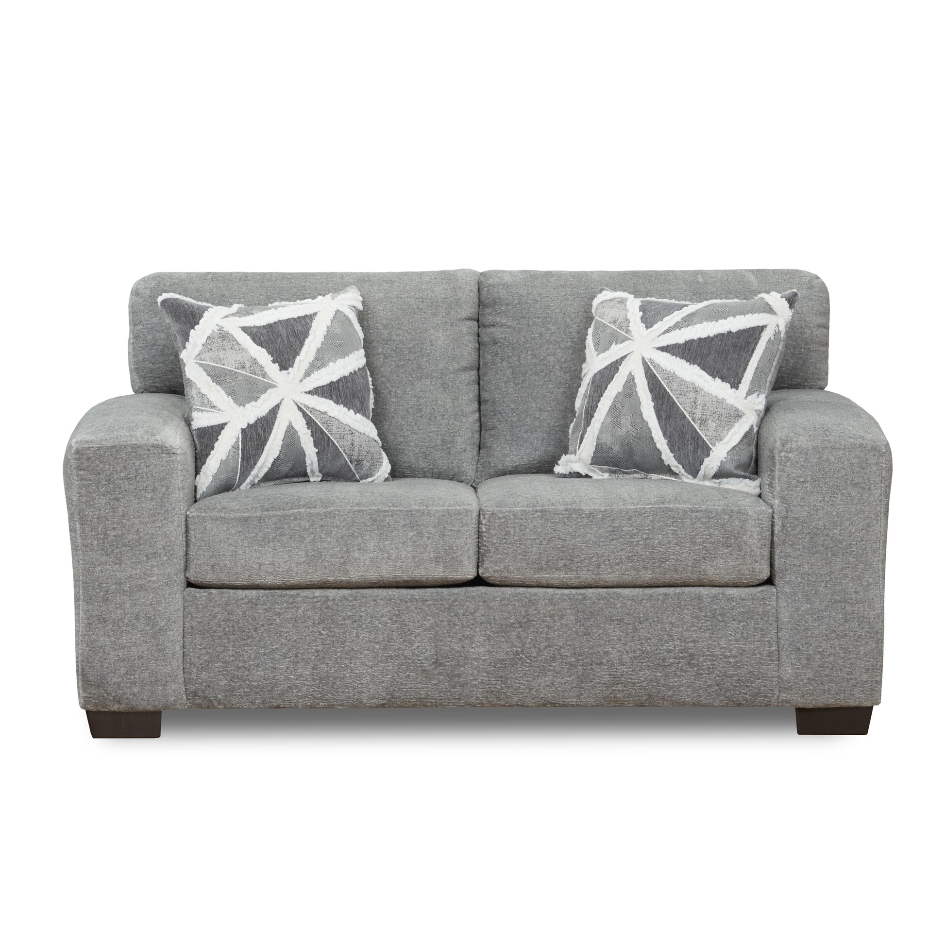 Compact in size but big on style and comfort, the Roundhill Furniture Arden Loveseat in posh gray chenille is the perfect fit for smaller living rooms, apartments, or cozy nooks. Designed for a cozy seating upgrade, it features the soft-touch chenille upholstery, durable hardwood inner frame, and a clean-lined silhouette. Included accent pillows, in plush white wide wale corduroy and bold geometric patterns, which add depth and warmth to your lovely home. Whether paired with the matching sofa or styled solo, this loveseat offers timeless comfort with a modern edge, proudly made in the U.S.