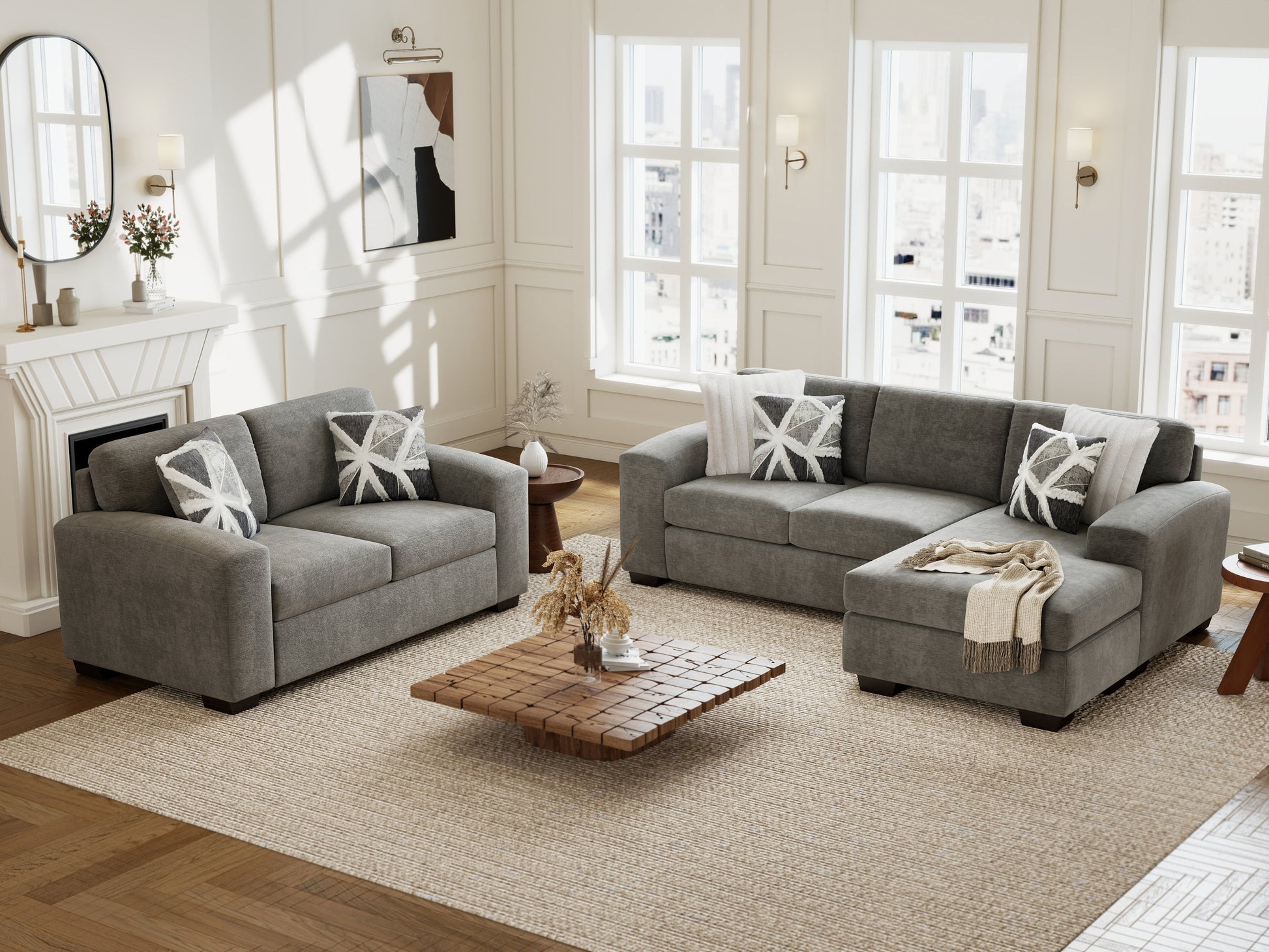 Roundhill Furniture Arden Living Room Collection with Convertible Sofa Chaise and Loveseat, Posh Gray