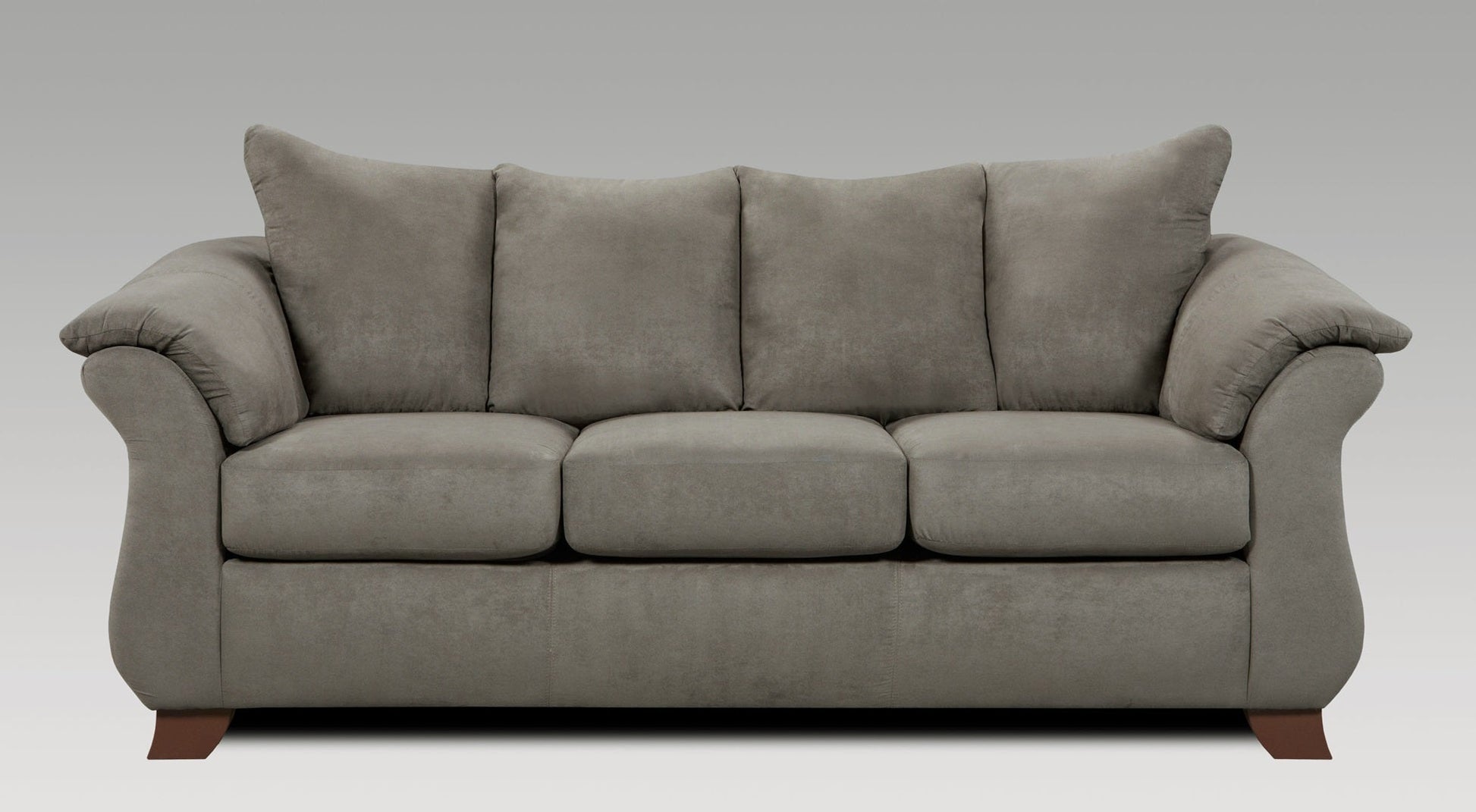 Introduce some contemporary-style comfort into your cozy living room with the Aruca Sensations Gray Microfiber Pillow Back Living Room Collection. This striking sofa set sports a soft gray hue and plenty of plushness for complete sitting comfort. The sofa is built from selected solid hardwood with dense foam padding the frame. The armrests and pillow back cushions are also stuffed with foam. Upholstering the sofa is a durable, dense microfiber. Subtle block feet support this fetching piece.