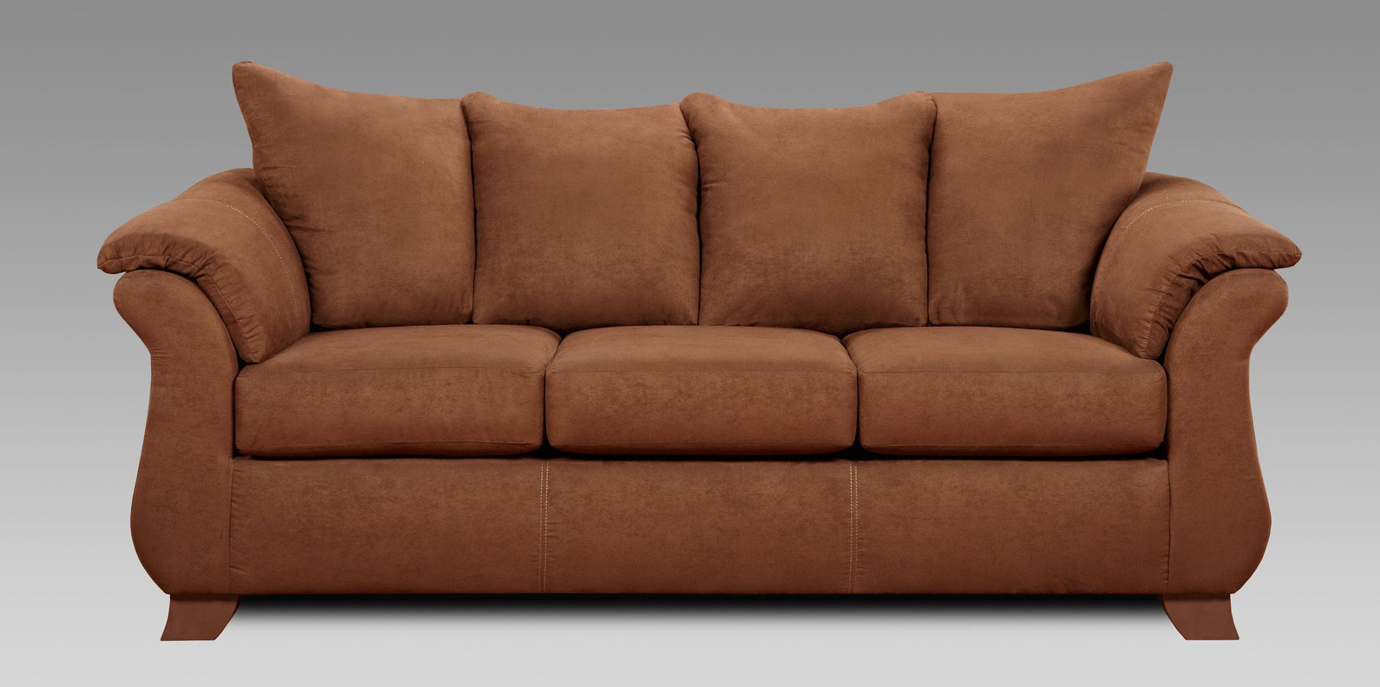 Introduce some contemporary-style comfort into your cozy living room with the Aruca Chocolate Microfiber Pillow Back Living Room Collection. This striking sofa set sports rich chocolate and plenty of plushness for complete sitting comfort. The sofa is built from selected solid hardwood with dense foam padding the frame. The armrests and pillow back cushions are also stuffed with foam. Upholstering the sofa is a durable, dense microfiber. Subtle block feet support this fetching piece.