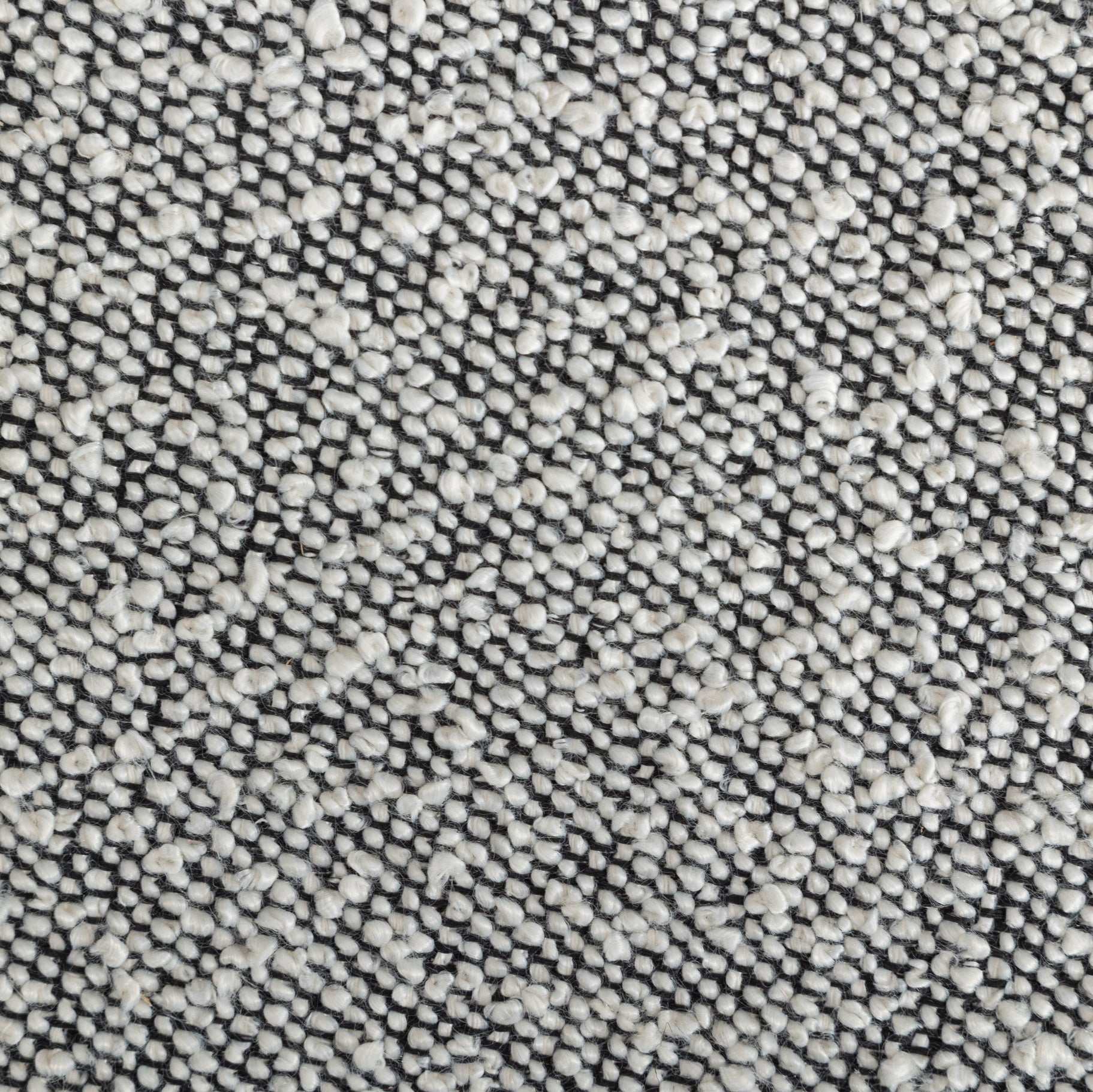- Chairs feature curved design and boucle fabric for comfort and style.