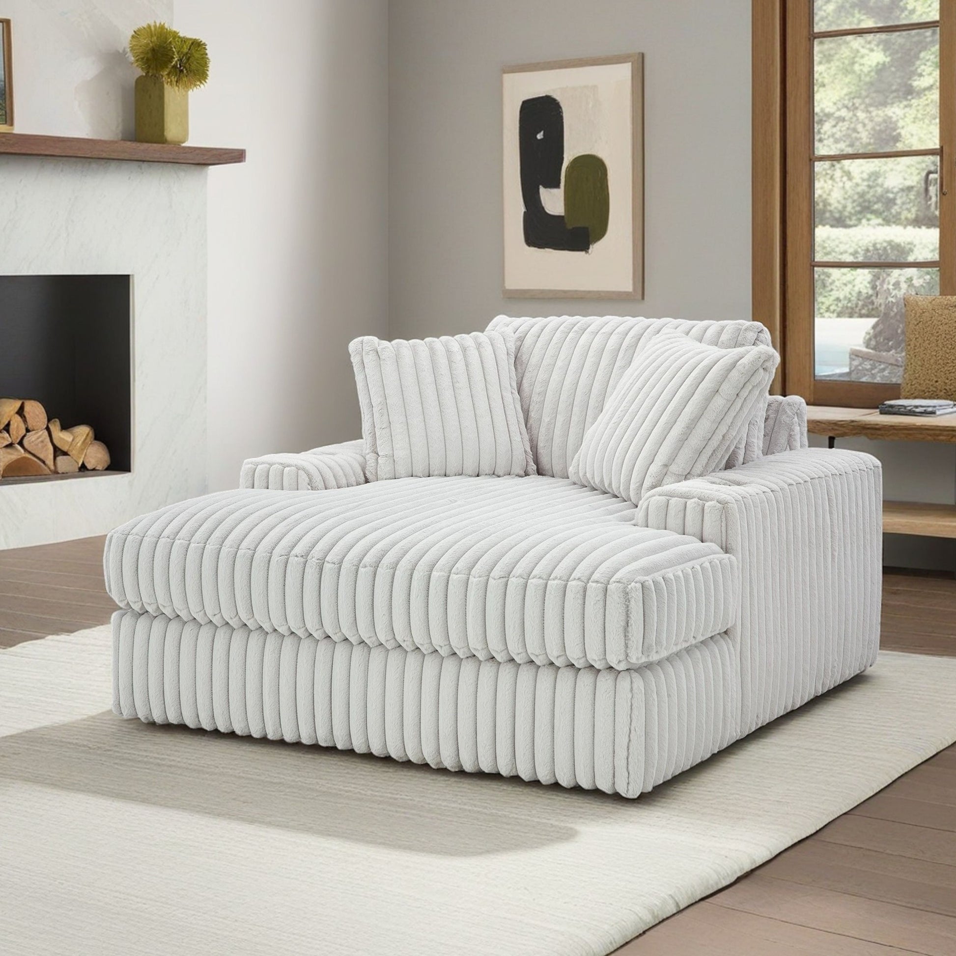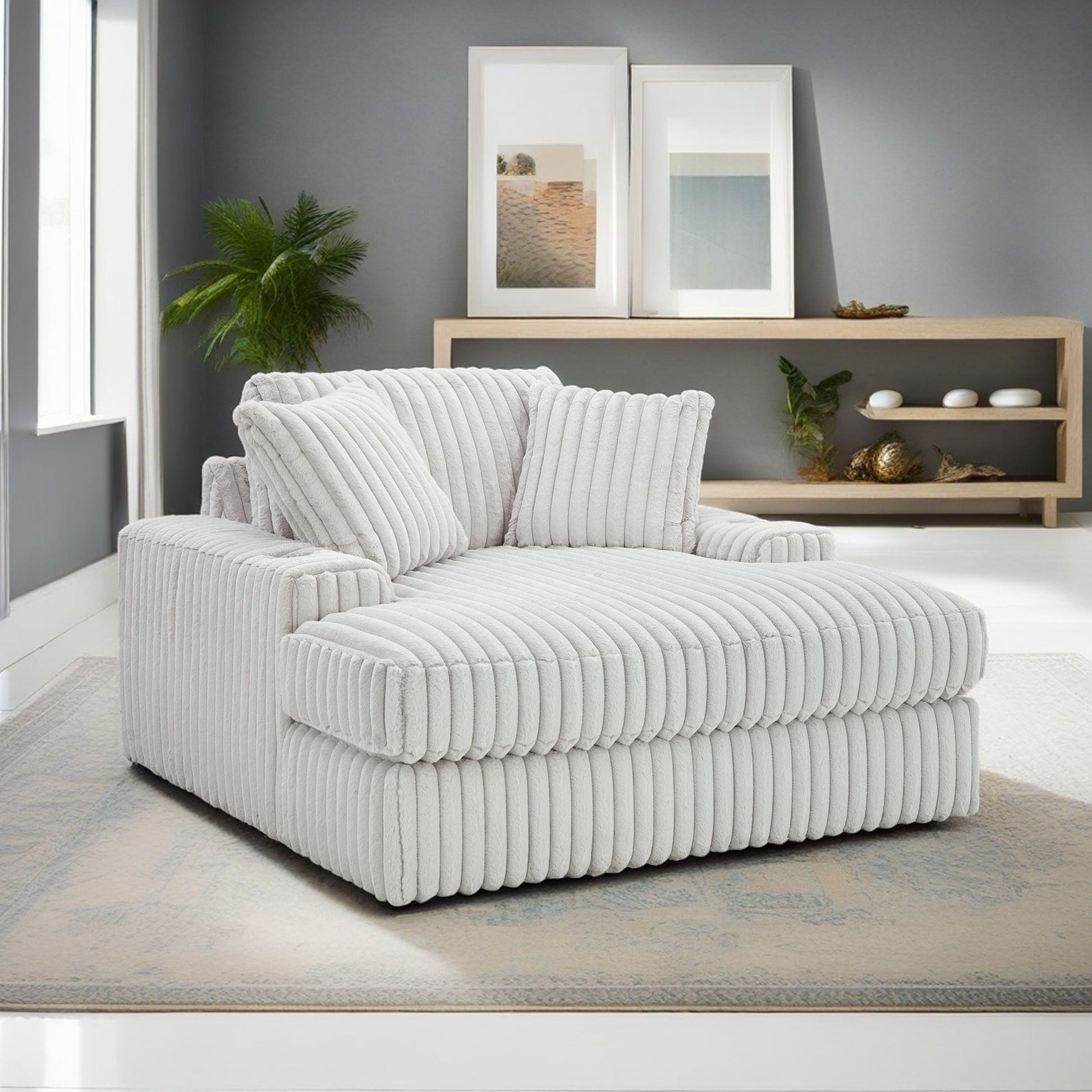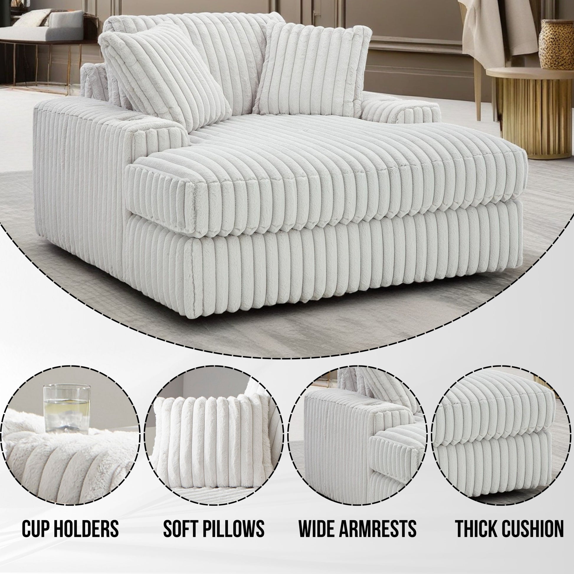 - ➤ [COZY SEATING SOLUTION]: This chaise features a unique corner-blocked design, coupled with retro-cool jumbo cord over feather-blend cushions for a supremely soft lounging experience. Expertly upholstered, it delivers both a luxurious appearance and cozy seating.