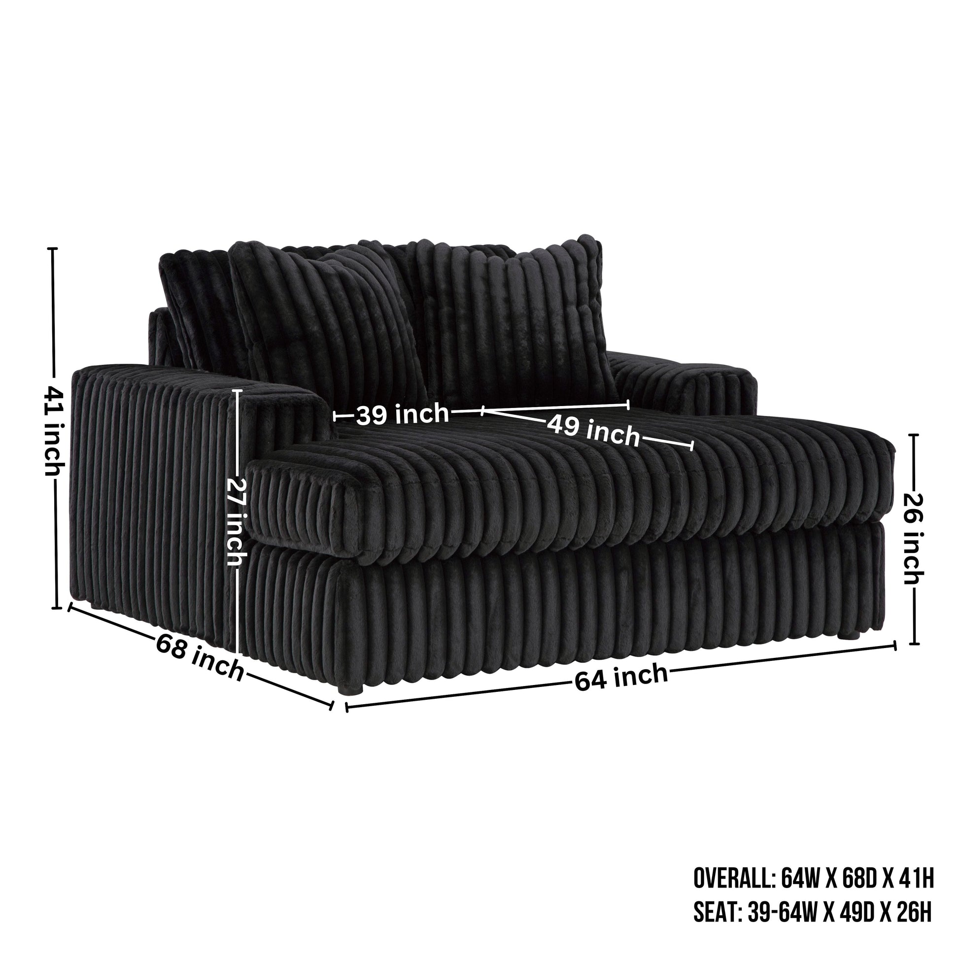 Seat: 39-64W x 49D x 26H;