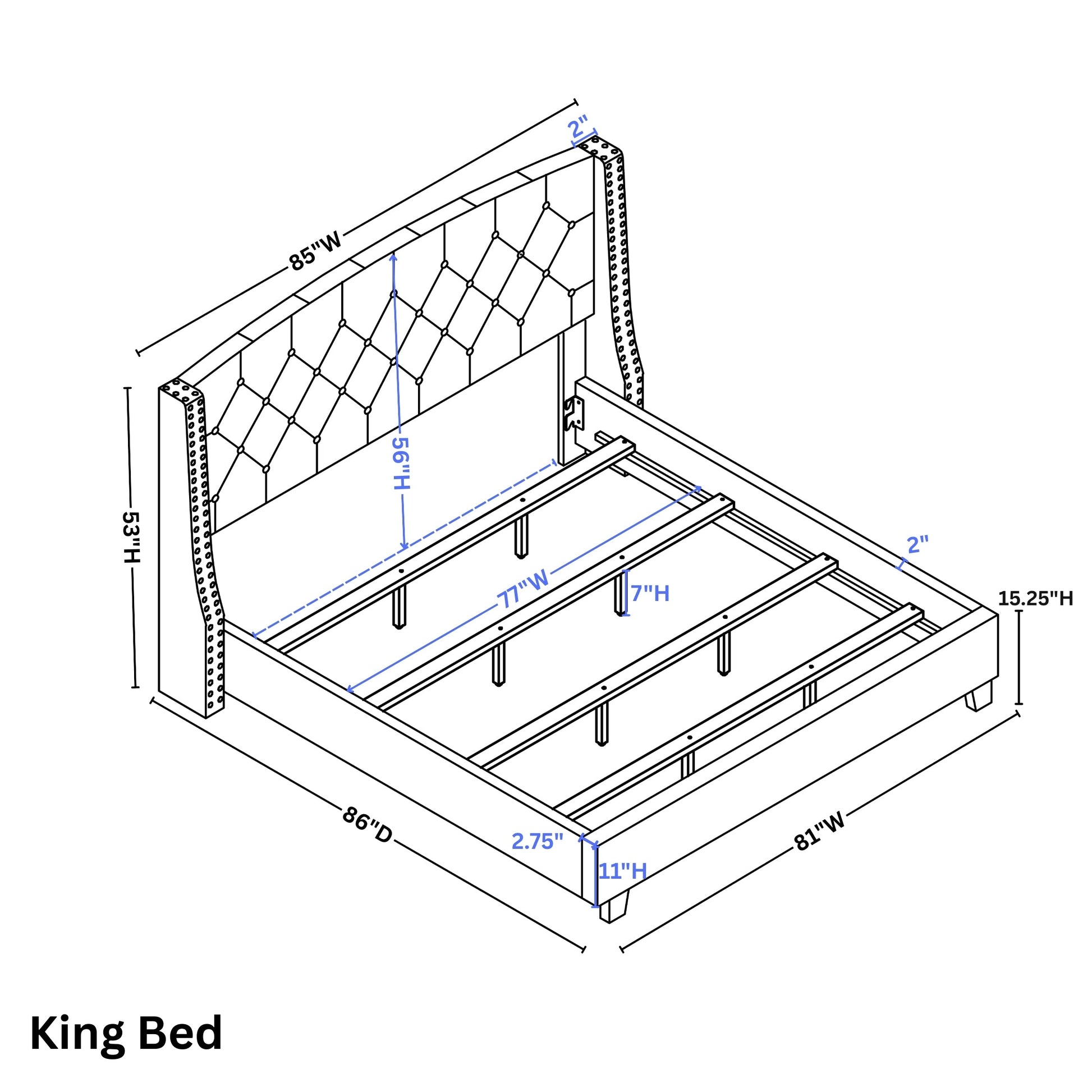 Time to invest in your sleep life. The Nantarre Fabric Button Tufted Wingback Upholstered Bed with Nail Head Trim transforms your bedroom into a luxurious and relaxing haven. The simplicity of form and classic feel of the button tufting lend an appeal that transcends passing trends. The upholstered headboard is button tufted, and the shelter-style edges are trimmed with nailhead studs in a pewter finish. Linen-like fabric offers a body and rich texture.