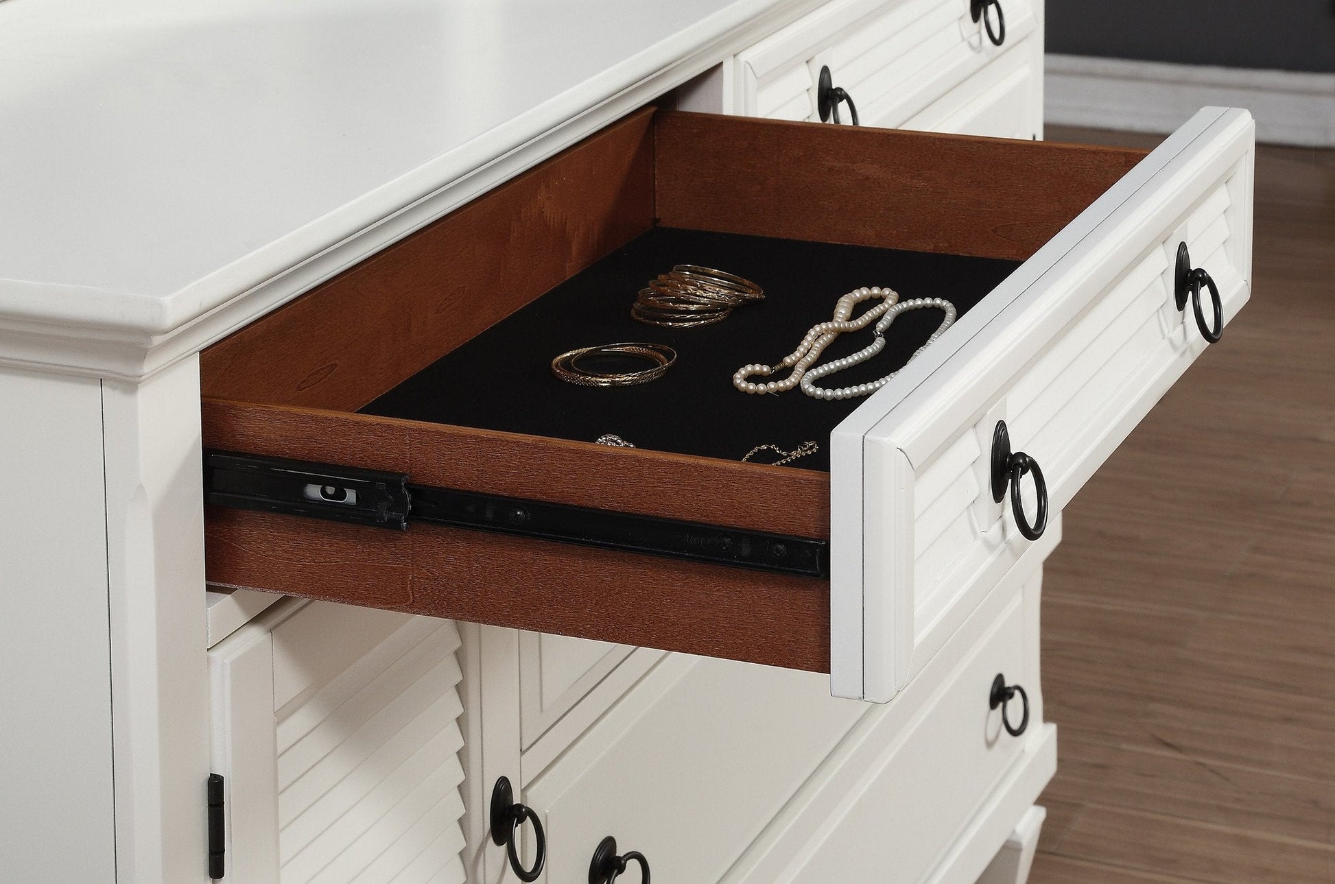 - All drawer has ball bearing full extension, velvet on all top drawers