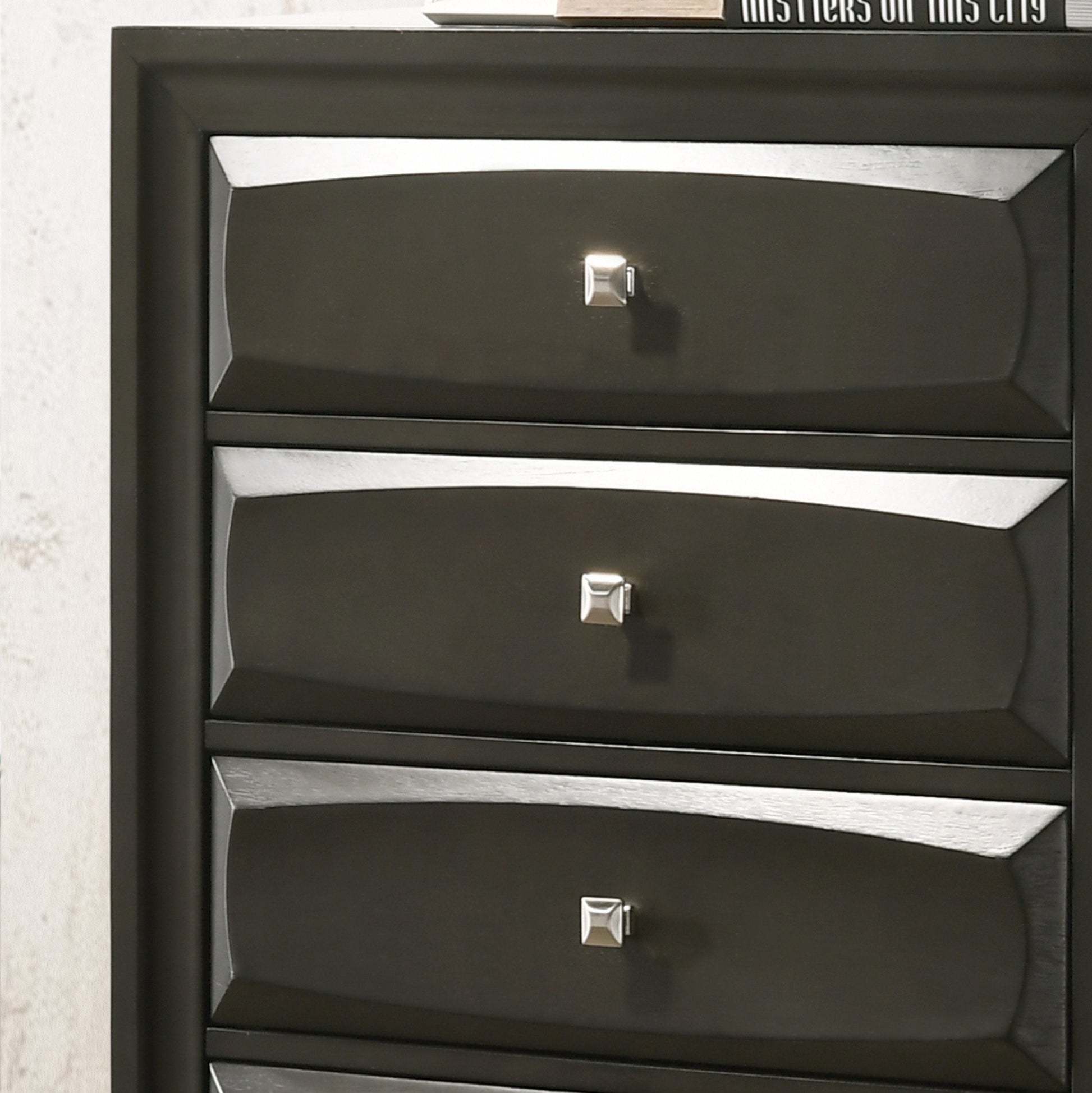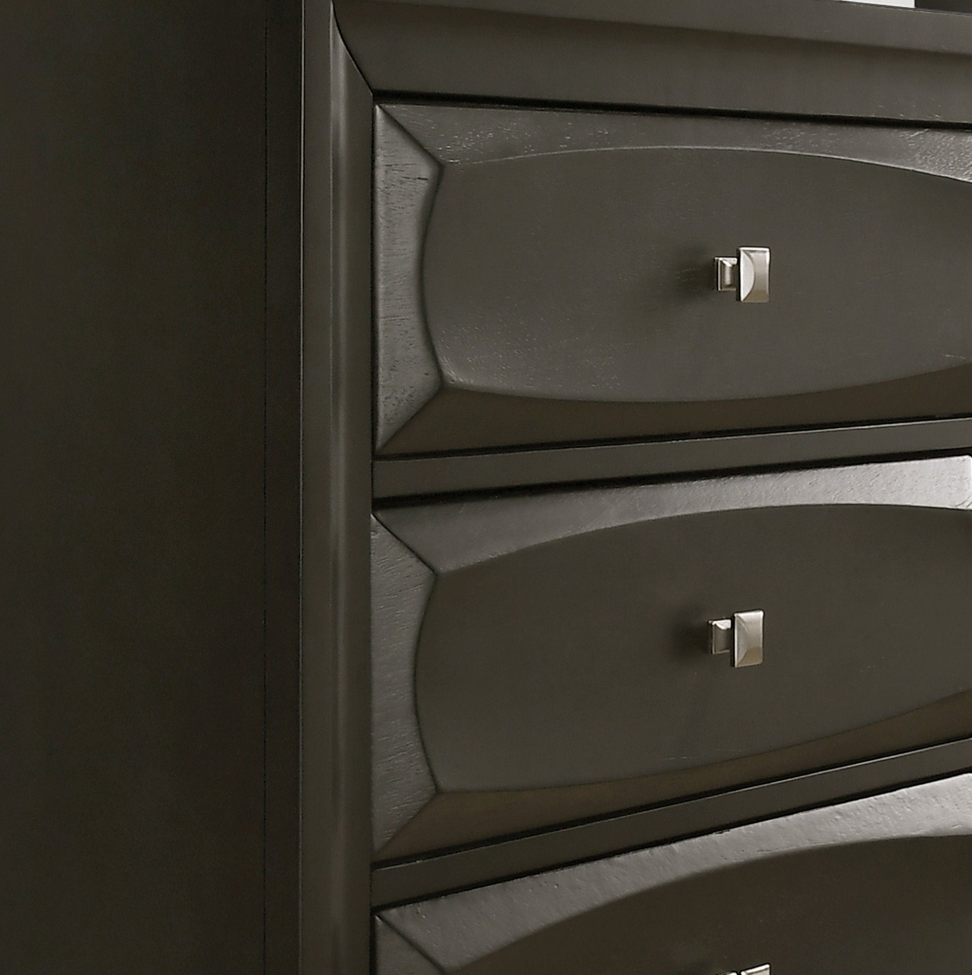 Indulge yourself with the luxury of the Oakland bedroom collection by Roundhill Furniture. Designed with elegant and detailed hand-crafted pieces, this chest is constructed of solid hardwoods and covered with a rich antique gray oak finish. All drawers feature beveled edges for a unique and refined appearance that is complemented.